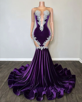 Purple Lace Velvet Prom Dress 2025 Mermaid
