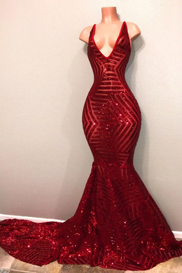 V-neck Burgundy Pattern Sequin Prom Dress 2025 Mermaid