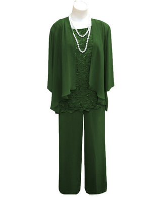Moss Green Mother of the Bride Dress Pants Suits Plus Size for Wedding 3 Pcs