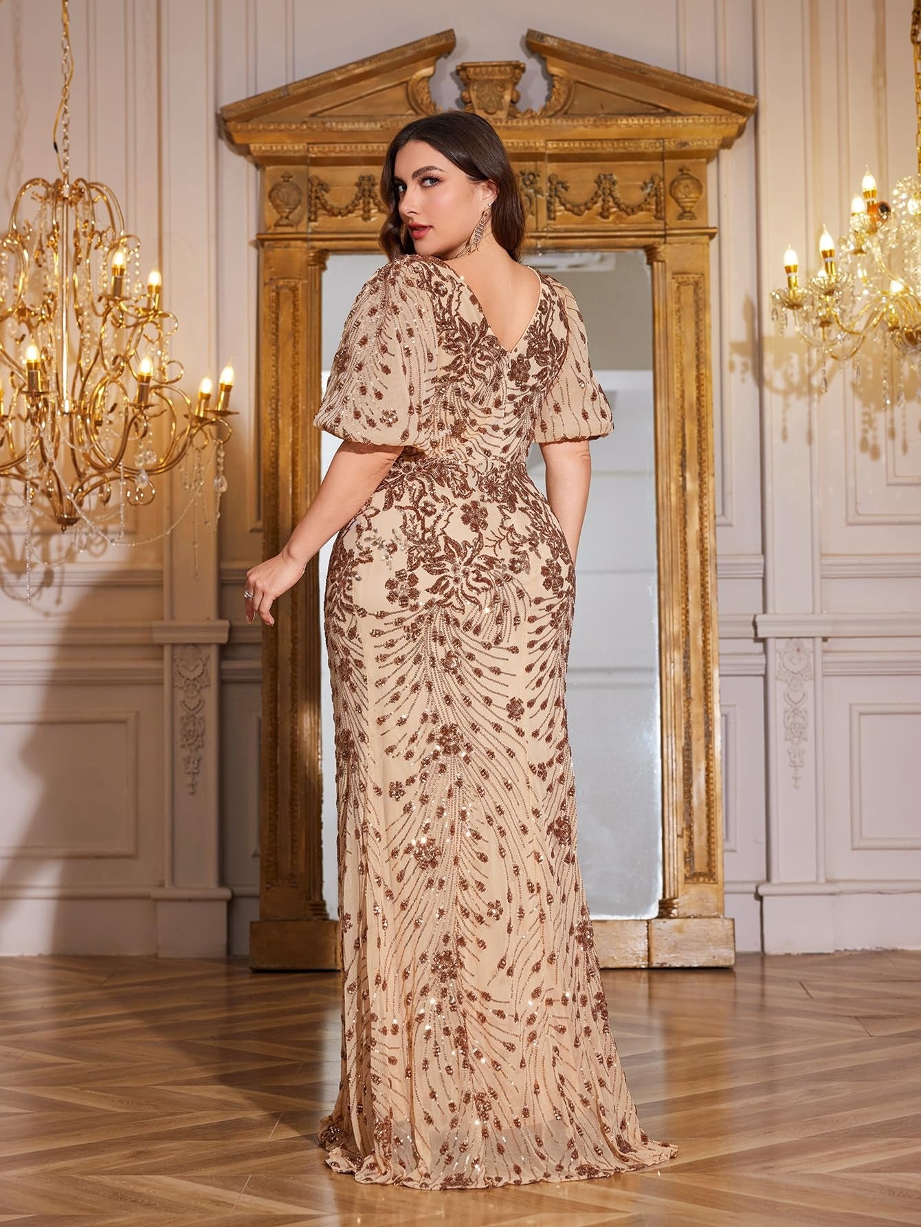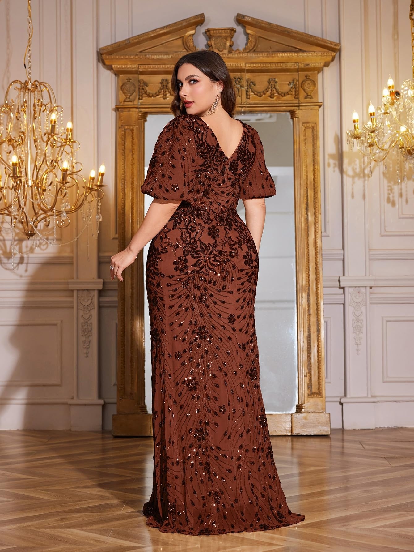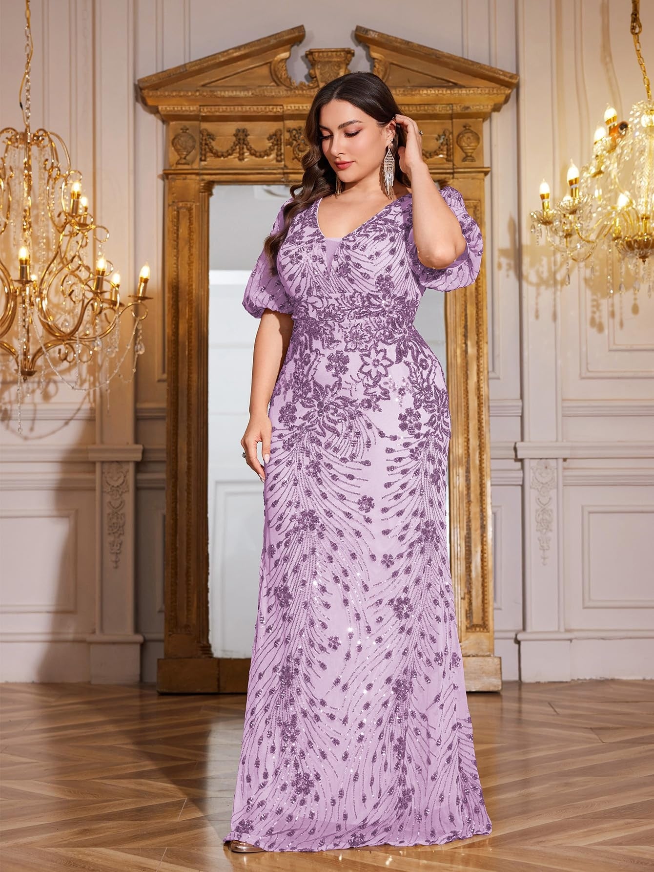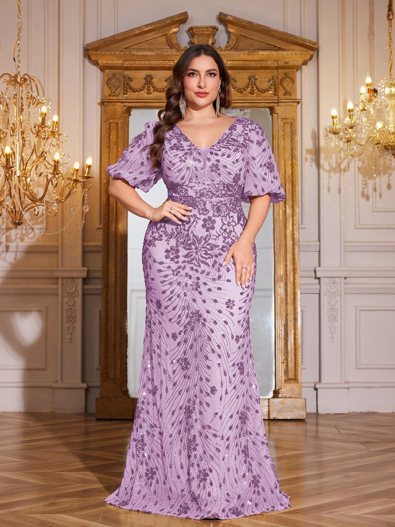 Teal Mermaid Plus Size V Neck Mother of the Bride Dress with Sequin Appliques